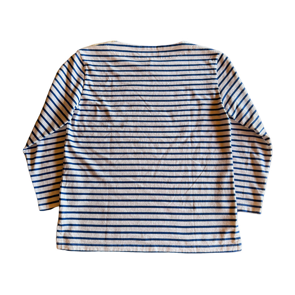 Boat neck bracelet sleeve T-shirt / Marine stripe / Blue stripe