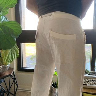 ウエストとポケット口にリブを使い、全体のラインはすっきりとしたテーパードライン。