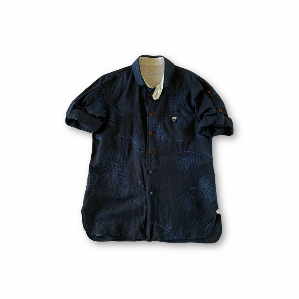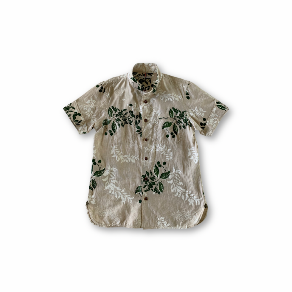 Round collar roll-up sleeve shirt / Palm reaf #4 / Natural base