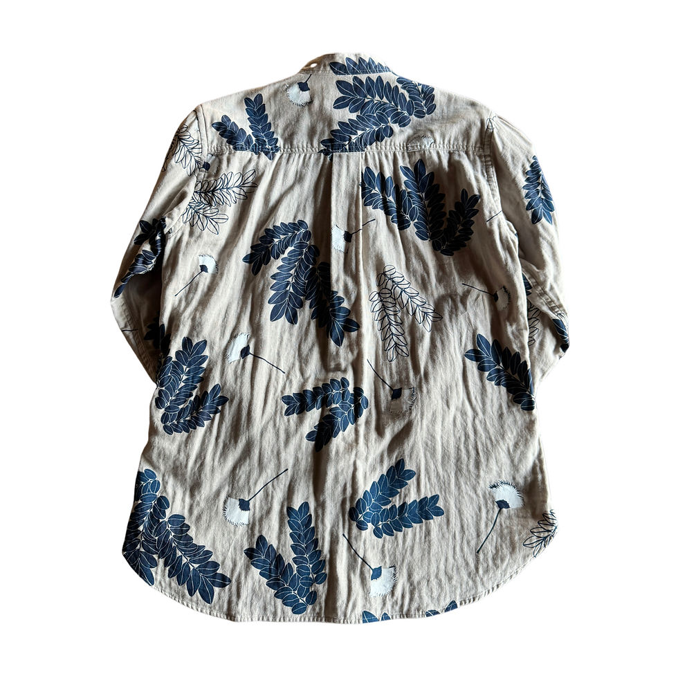 Round collar roll-up sleeve shirt / Palm reaf #4 / Natural base